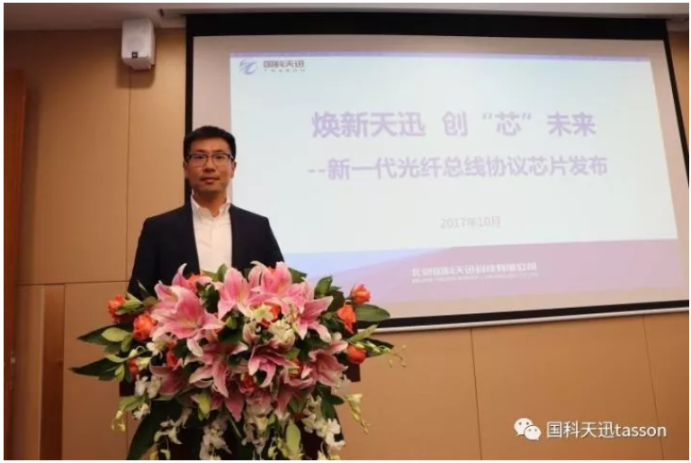国科熊猫体育-熊猫官方网站-熊猫体育(中国)市场部经理徐俊亭为大家讲解并发布国内高可靠光纤通信领域的首款总线协议芯片产品。